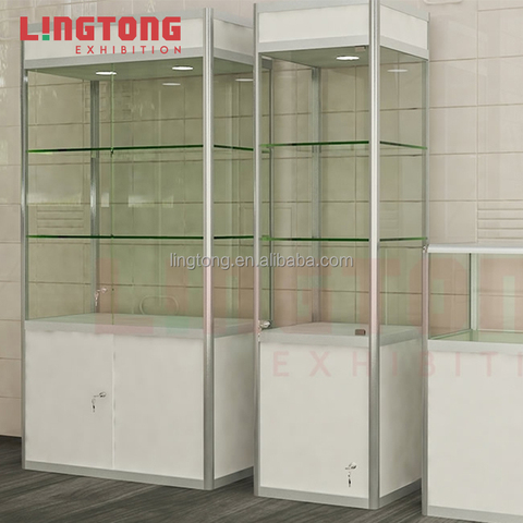LT-ZGC02 Modern Free Standing Retail Mobile Phone Jewelry Aluminum Tempered Glass Cabinet Upright Extrusion Showcase Lockable